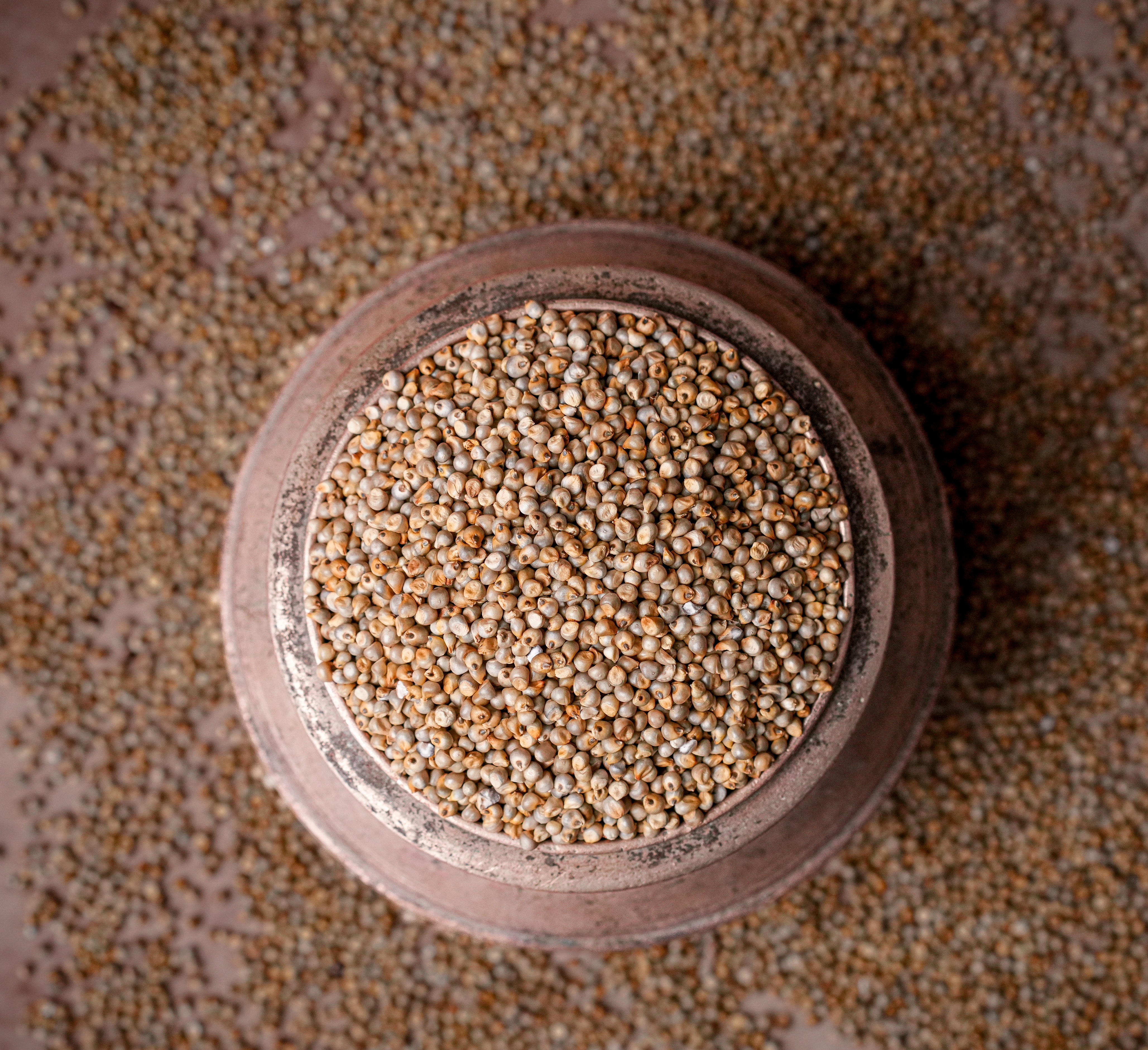 Pearl Millet in 1Kg Vacuum Packing. De-Stoned, Graded and Colour Sorted grains. Store in refrigerator once the pack is opened.